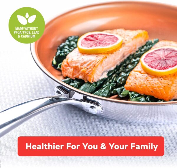 - LASTS A WHILE- The Gotham Steel Stainless Steel cookware line is constructed to last you for years to come. The pan is made from heavy duty forged stainless steel and highly conductive aluminum to provide you with thick long-lasting durability while maintaining a light weight and weighing significantly less than frying pans of comparable size. The triple reinforced stainless steel made from 2 different metals ensures that you have the ultimate heat retention and precision.