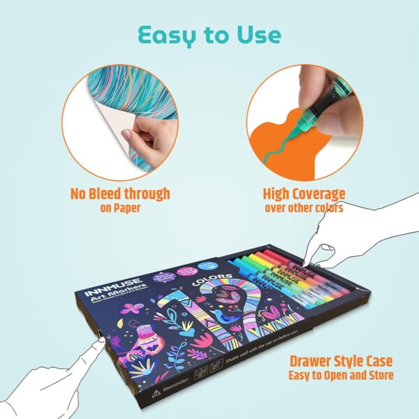 • Bold & No-Bleed: Colors remain vibrant on both light and dark surfaces, with water-based ink that won’t bleed through paper.