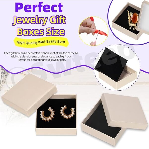 - 💥【What You Get】—— In this kit, you will receive 10pcs beige 3.5×3.5×1 Inch cardboard jewelry gift boxes, 1pc scissors and 1pc polyester ribbon, in total of 12pcs. Whether you are a jewelry retailer or someone who loves collecting jewelry, these boxes will meet your diverse needs.