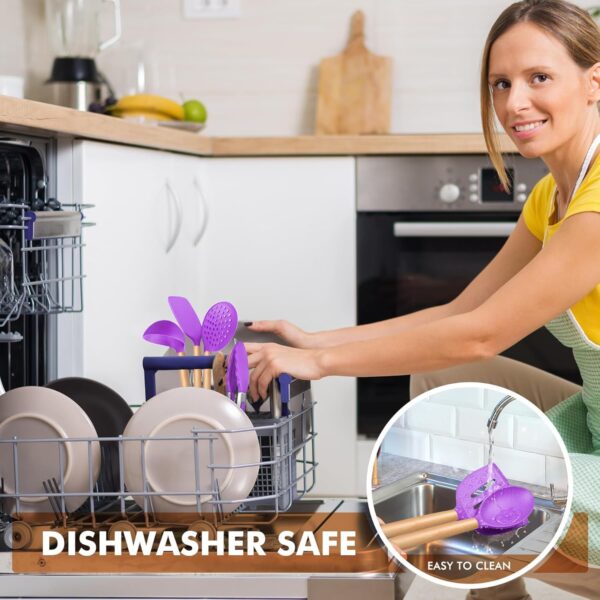 - This Kitchen Utensil Set Is Designed For Easy Cleaning,Simply Place The Utensils In The Dishwasher, And They Will Be Spotless, Saving You Time On Cleanup
