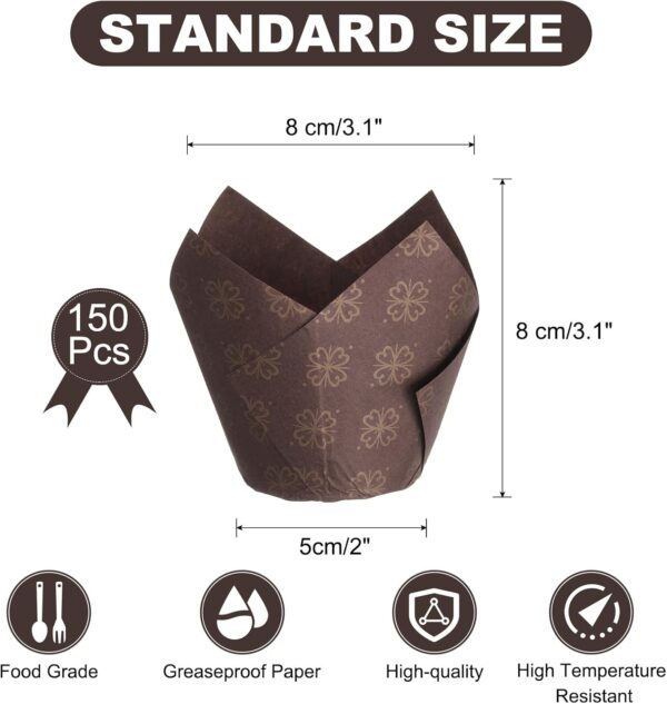 • Wide Application: Use these tulip cupcake liners for various events and celebrations, adding a touch of elegance to your dessert table. They are versatile and can be used for both sweet and savory treats.