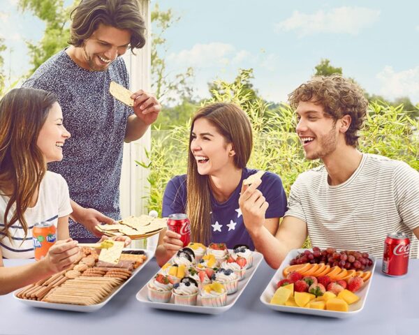 - Multiple Uses: Large Serving Platters and trays satisfy all of your need during your daily life, perfect for serving cupcakes, sushi, fruits, snacks, appetizers, turkey, sandwiches and chips/salad, dessert, classic white rectangular plates enough for all your entertaining needs