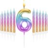 2.7″ Rainbow Number 6 Candle with 12 Spiral Candles – Birthday Cake Topper