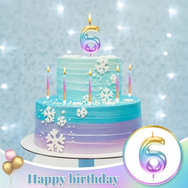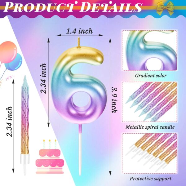 • Product Size: this colorful number 6 birthday candle measures about 2.7 x 1.8 inches, each gradient bright color spiral rainbow cake candle is about 3.1 inches long, it is suitable for most cake size, please confirm the size you need before buying