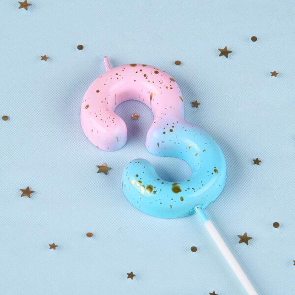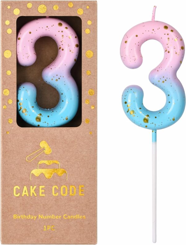 - New: 2.76 Inch Large Classical Pink Blue Gold 3 Number Birthday Candle designed to make your cake and birthday a unique and truly inspiring event.