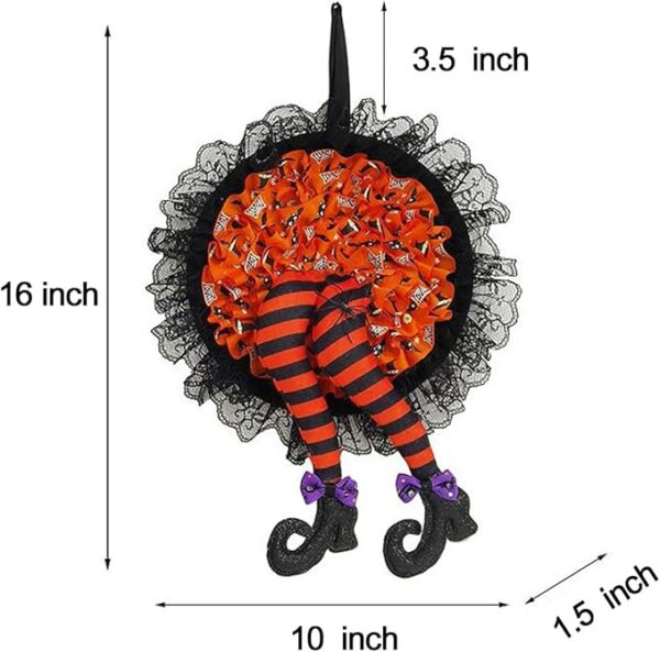 - Festive Décor: Bring a touch of spooky charm to your home with this Halloween wreath featuring a witch’s hat and legs.