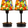 - Ideal for Outdoor & Indoor Décor: The multicolor block shade and the black finish adds a touch of fashion to the black table lamp, making the lamp a stylish addition to your home décor. Use the cute small table lamps to create a cozy atmosphere in your dining room or bring a welcoming light to your outdoor patio evenings. Choosing the portable lamp will be a wise choice