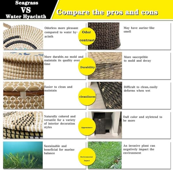 - Natural Material – We carefully select the finest seagrass materials for crafting our exceptional 2-pack wicker baskets with laundry bags. The all-natural handwoven blankets storage with sturdy mother-of-pearl inlay lids provide the perfect accent to any room in the house with a tight weave, durable construction, exquisite and impeccable quality.