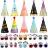 20-Piece Rainbow Birthday Party Hat & Sunglasses Set – Funny Cone Hats with Pom Poms