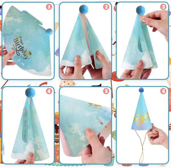 • Easy to assemble: The paper hats are unfolded before assembling, it is easy to assemble into a cone shape, then pass the string through the small holes and fix it on both sides of the hat, a funny colorful birthday hat with pom poms is ready for you. You will need to assemble the hat after you receive it, please consider this before purchasing