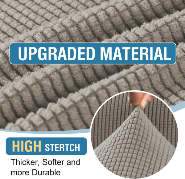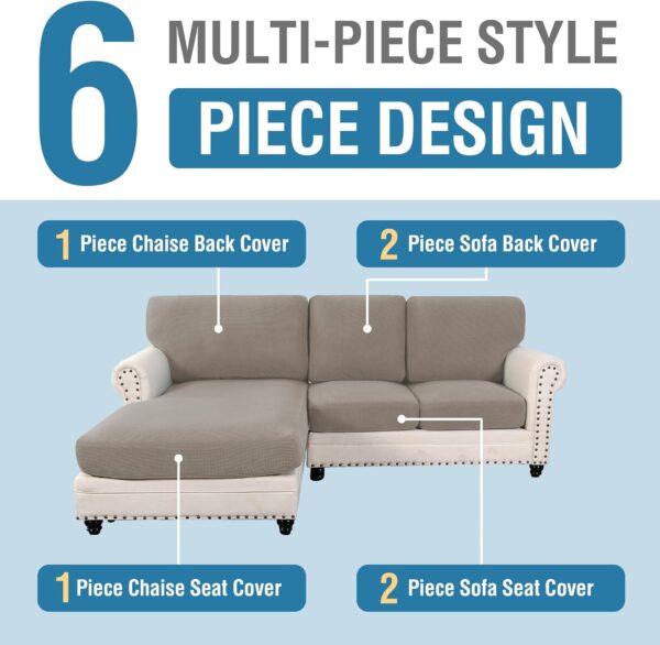- Multi-piece Style: Our newest modern stretch sofa slipcovers are passed GLOBAL RECYCLED STANDARD certificate, constructed with 6 PIECE (including 3 backrest cover, 2 cushion covers and 1 chaise covers), separate covers can be better cleaned and replaced. Allows you to create the custom upholstered look you have been waiting for in vibrant checked pattern jacquard. Featuring a secure and exacting fit with smart seam and elastic edging all around