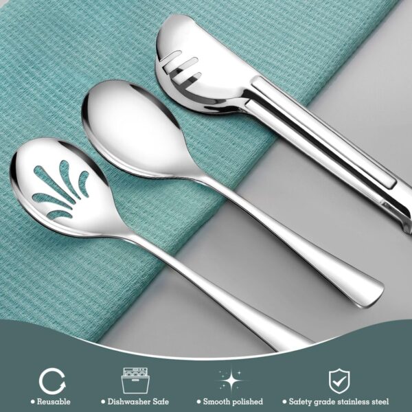 - SET OF 24 INCLUDES – 8 metal Slotted Spoons in 9.8 inches, 8 metal serving spoons in 9.8 inches, and 8 metal serving tong in 9.4 inches.