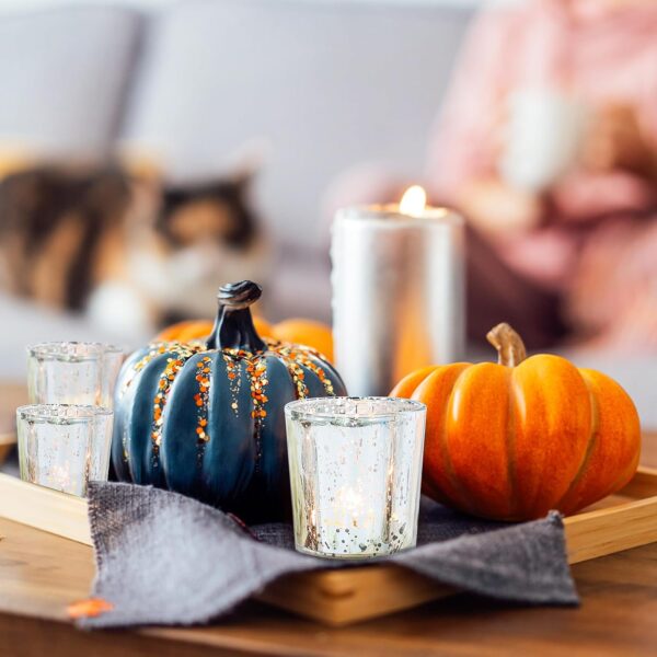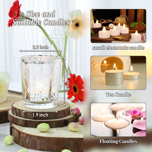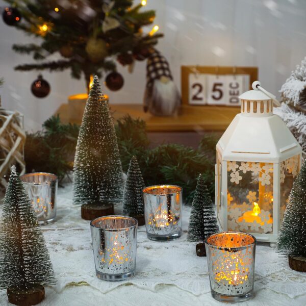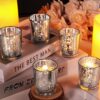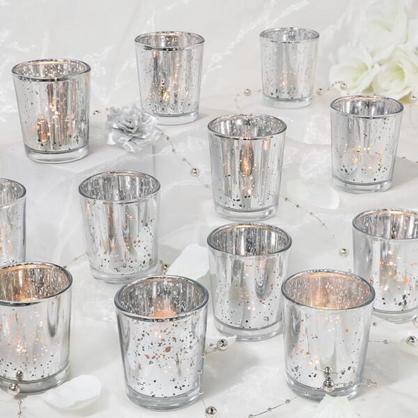- Tealight Candle Holders: A captivating visual experience is created by the beautiful silver color of these candlesticks and the stunning mercury glass inside. The mercury glass reflects a dazzling light, casting a soft and sophisticated glow. this tea light candle holder add elegance and romance to any space, captivating the eye.