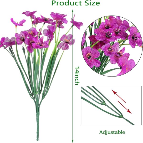 - UV RESISTANT OUTDOOR FAKE FLOWERS: Outdoor fake flowers are made of high quality PE material, the inner wired plastic stems and PE plastic leaves are UV resistant and will never fade. This plant requires no care, no exposure to the sun, no watering, no pruning, and can withstand all kinds of wind and rain, keeping the most brilliant colours year after year, day after day.