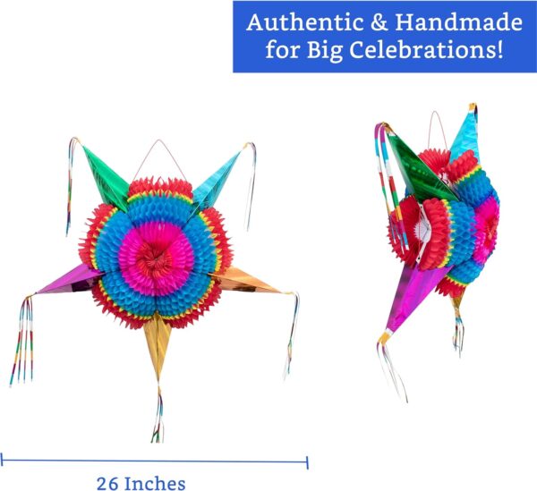 26″ Mexican Star Piñata – Handmade Foldable Piñata for Birthdays & Cinco de Mayo Celebrations