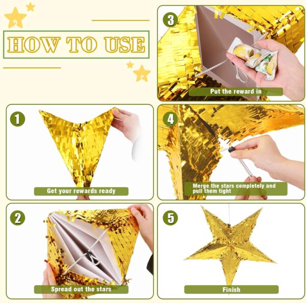 • Funny Party Game: this mini piñata star is a fun party game, by letting guests take turns to break the piñata to release the candies inside to add more fun; Just hang the star piñata, blindfold your eyes, and use the beating stick to release the candy