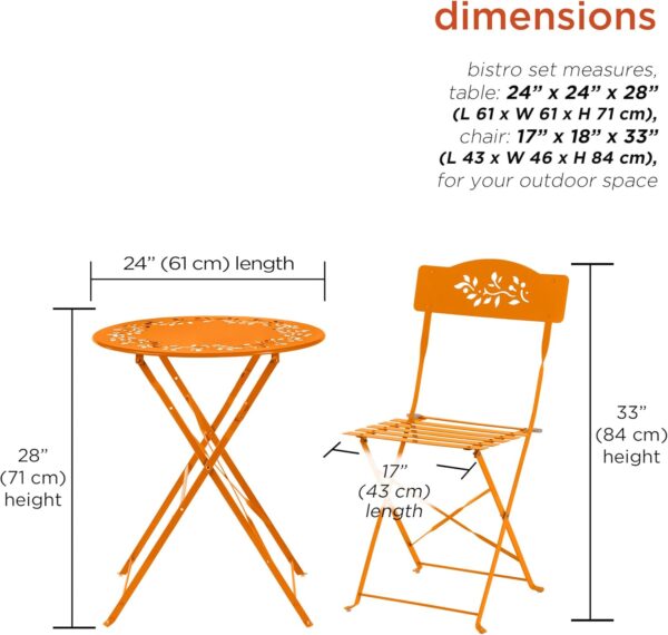 - PATIO SEATING SET: Bright, vibrant colored steel 3-piece bistro set featuring 2 folding chairs and table, and provides a pop of color to your indoor or outdoor living space or patio