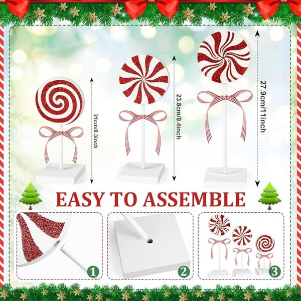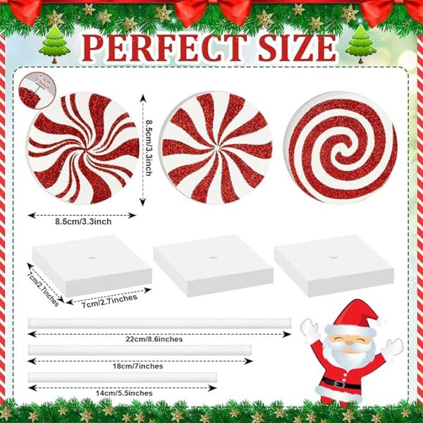 • Detailed dimensions: These candy sets stand at 7.5/9/10.6 inches, the candy measures 8.5 cm/3.3 inches, the square base is 6 cm/2.4 inches, and the candy is 0.5 inches thick. Enough to meet your Christmas decoration needs.