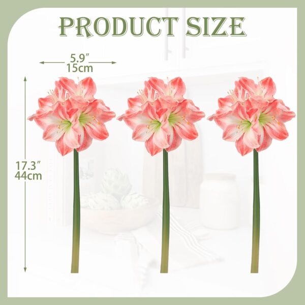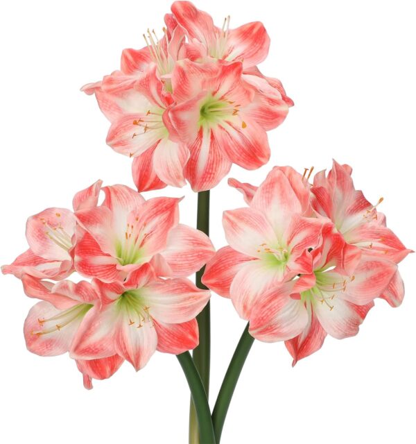 - Size and Package: Each package contains three artificial amaryllis stems, each standing 17.3 inches tall with four intricately crafted silk flower heads, making them perfect for extensive holiday and event decorating.
