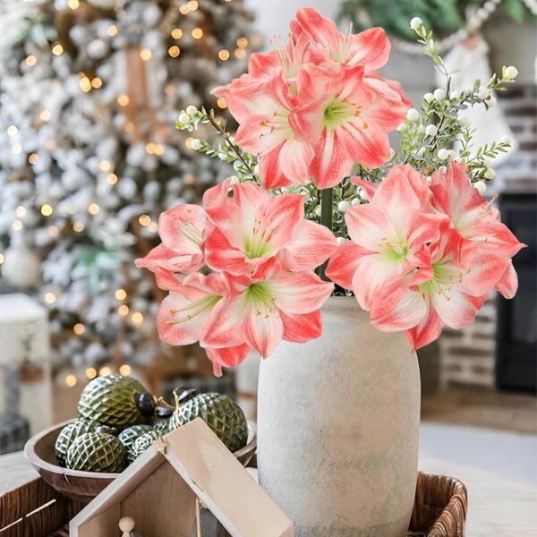 - Wide Decor Usage: Ideal for Christmas indoor decorations, home and room accents, table centerpieces, vase, and wedding arrangements, these faux amaryllis flowers enhance any space with their elegant appearance.