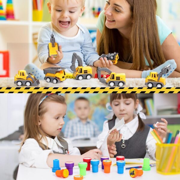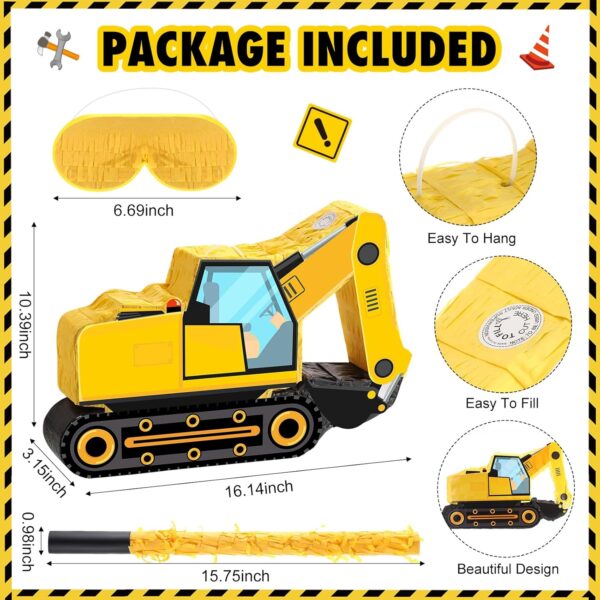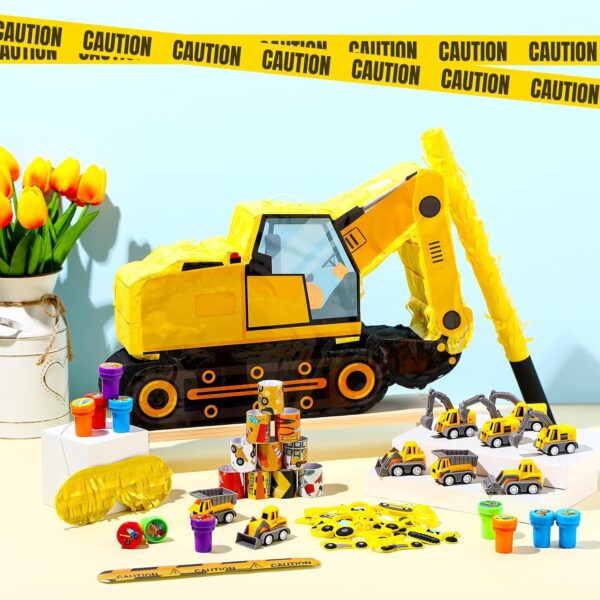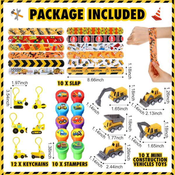 - Sufficient Quantity: These construction birthday party supplies include 1 excavator pinata, 1 blindfold, 1 bat, 12 slap bracelet wristbands, 12 key chains, 10 mini construction vehicles toys and 12 stampers, enough to meet the construction birthday party needs