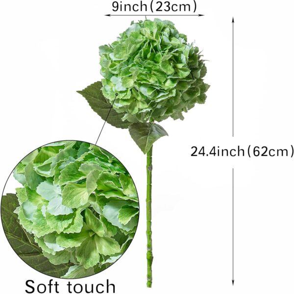 - [SIZE] Height approx 24.4”(62cm),Flower head 9”(23cm),Weight: 2.8oz(80g).4pcs realistic hydrangeas ,The flexible and individual stem allows you to bend easily or cut shorter for DIY or fitting variety kinds of vases in a realistic way. hydrangea flower bouquet is beautiful and nature looking!