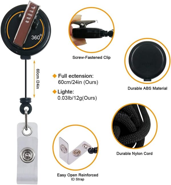 - 【Usage】You can hold badge reels in your belt, pockets, backpacks , purse straps, collar or trouser expediently.