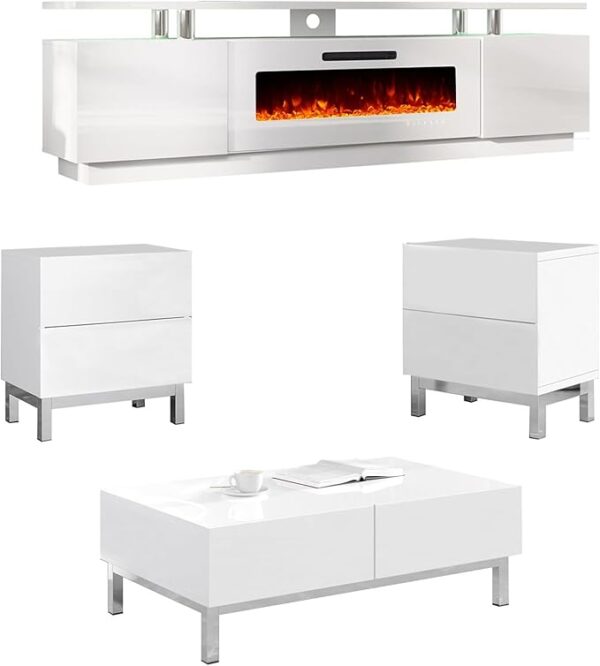 - Elegant Modern Design: Three pieces modern design living room table sets advocate the beauty of matching, adding a touch of contemporary style to your home, including 1xFireplace TV stand, 1xCoffee Table