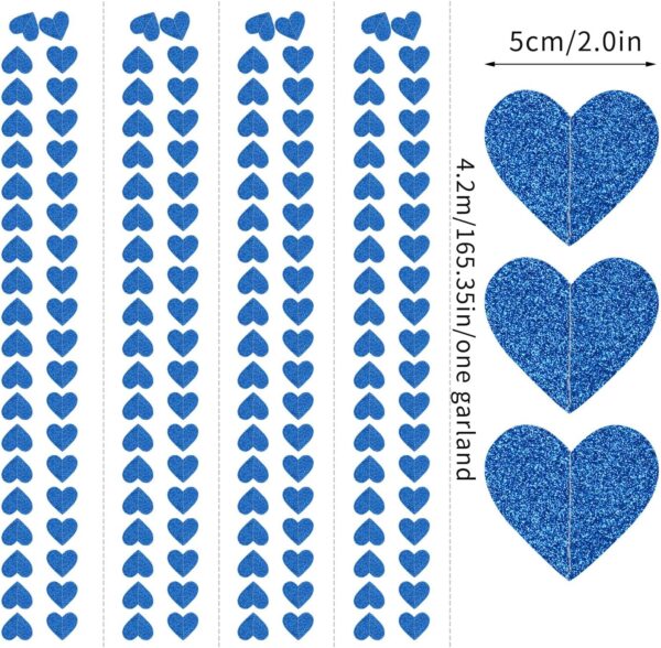 • 【Package including】The party garlands includes 4 x royal blue paper garlands, each backdrop bunting is 13 feet/ 4 meters long, total length is 52 feet/ 12 meters. Every Banner has 40pcs hearts which the size is 1.97”