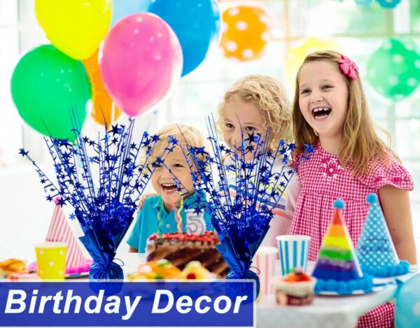 - Fine Workmanship: The glitter blue star centerpieces are made of quality metallic plastic, foil and metal wire,not easy to break or fade. The cement base is steady with wrapped in silver foil, not easy to fall down, blue table spray decorations can be recycle use year after year