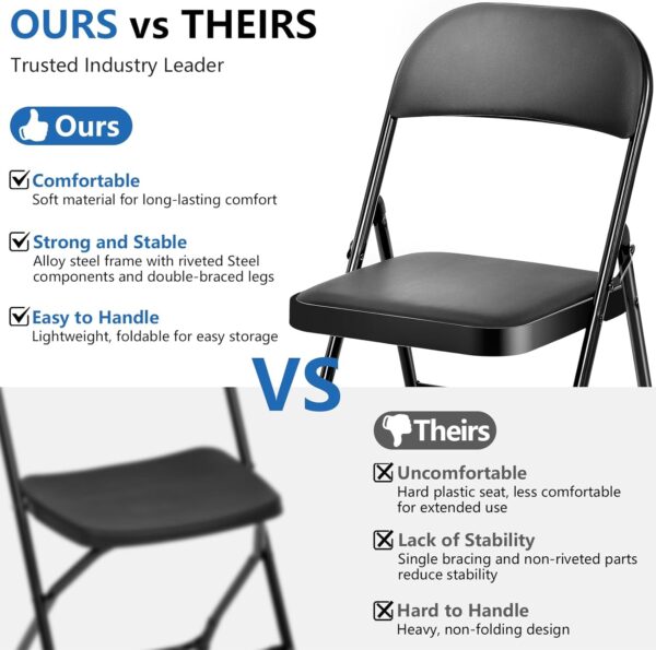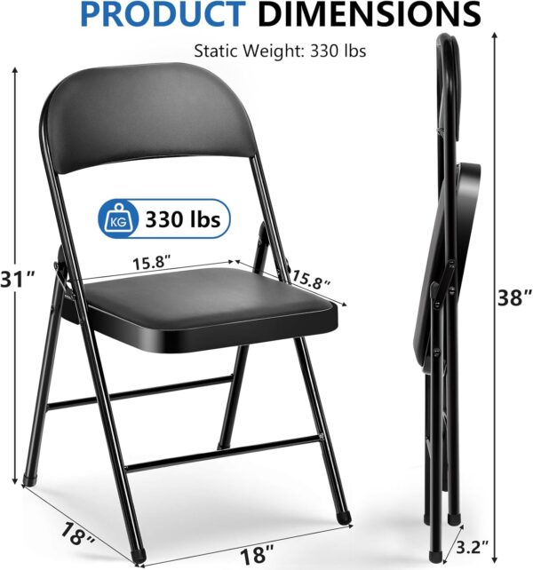 - Newest Upgrade Sturdy and Durable: The folding chair features a full-steel frame combined with a triangular support structure and double hinges for enhanced stability, supporting up to 330 lbs. Non-slip foot pads effectively protect floors and provide added grip. The rust-resistant coating makes it suitable for various environments and long-term use