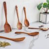 - SCRATCH-FREE DESIGN: Our Wooden Cooking Utensil Set is made of Premium Quality Teak Wood close-grained hardwood with high organic oil, and silica content that is known for being one of the hardest, strongest, and most durable of all timbers. Beautifully crafted, soft to touch, lightweight, and very solid basically defines these Wooden Spoon Sets for Cooking. Now you can use your precious non-stick cookware without worrying about damages and scratches.
