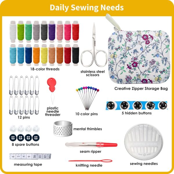 • Compact Size: The size of the needle and thread kit is: 7.68 x 4.72 in (length x width). All sewing tools are neatly placed in the sewing kits. The small and compact size makes this travel sewing kit easy to carry and can be easily put into a backpack or handbag. No matter where you are, you can deal with emergency repairs.