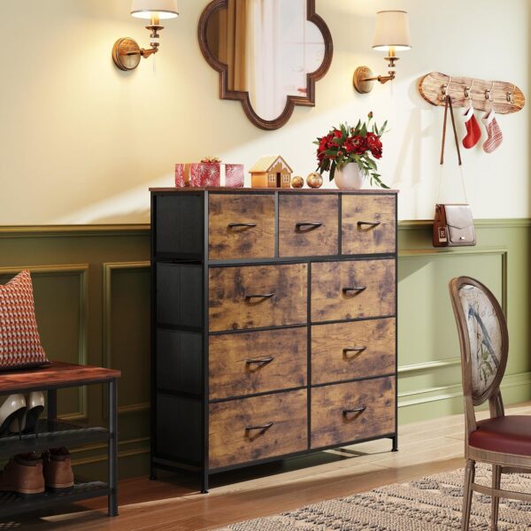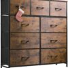 “9-Drawer Fabric Dresser – Tall Storage Tower with Wood Top & Steel Frame, Rustic Brown”