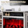• Farmhouse Style and Aesthetic: Fireplace TV stand features clean lines and extra long top panel overhang design, complemented by glass cabinet doors with cross-beam designs and metal handles for a vintage-inspired touch