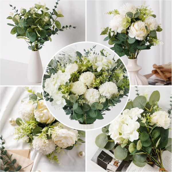 - Artificial Greenery for All Occasions : Our mixed fake eucalyptus leaves stems and artificial flowers are perfect wedding decorations, home flower arrangements, great fillers for vase, table centerpieces for wedding, birthday, bridal shower, baby shower, anniversary, engagements, Valentine’s Day and more.