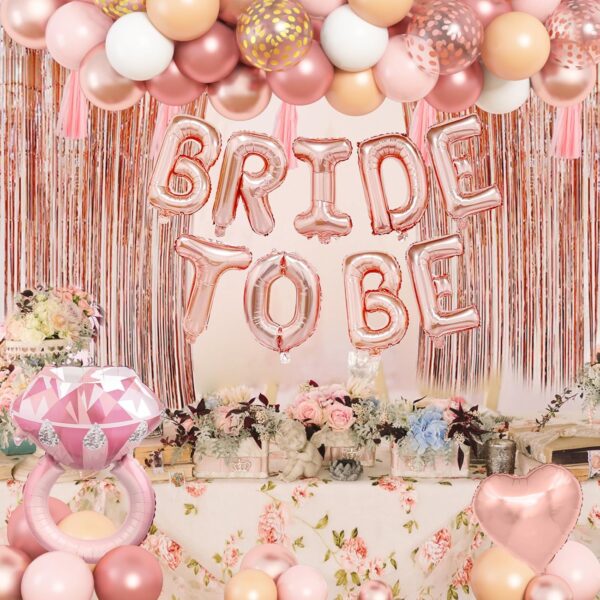 - Rose Gold Bridal Shower Decorations: Get ready to make memories that last a lifetime with the dazzling array of bachelorette party decorations to add sparkle and style to your bridal shower festivities; Set the stage for an elegant celebration with the rose gold bride balloons that bring a touch of glamour to your bridal shower decor; These bride to be decorations show luxury and charm, creating attractive touch that befits the radiant bride-to-be on her special day