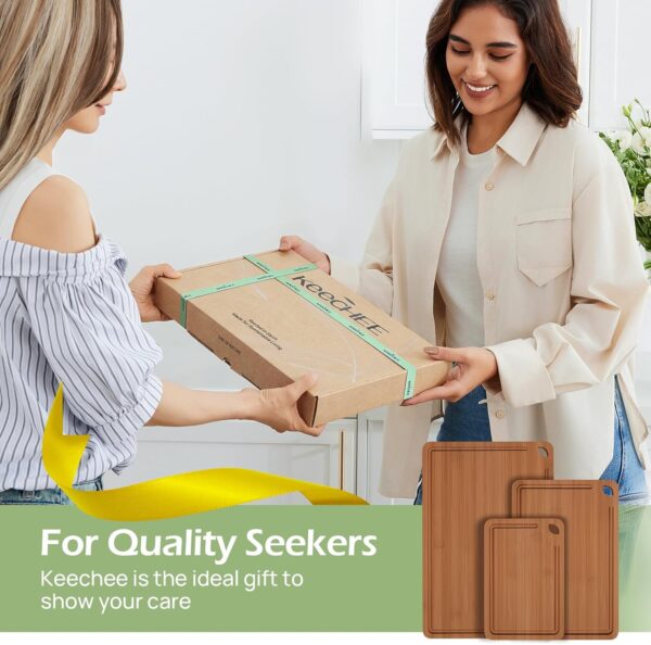 - ๐๐๐ง๐๐๐ข๐ญ ๐๐ฎ๐ซ ๐๐จ๐ฆ๐ – this cutting board set is crafted from sustainably harvested quality bamboo forests(Bamboo grows quickly and a single bamboo can be harvested multiple times). Known for its natural strength and eco-friendliness, our bamboo provides a durable and environmentally responsible choice for your kitchen.