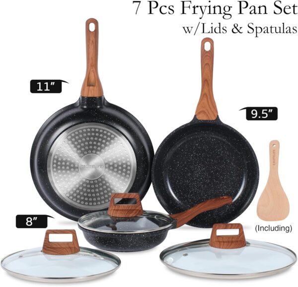 Ceramic Nonstick Frying Pan Set with Lids – Non-Toxic, PTFE & PFOA-Free, All Stovetop Compatible (Black)