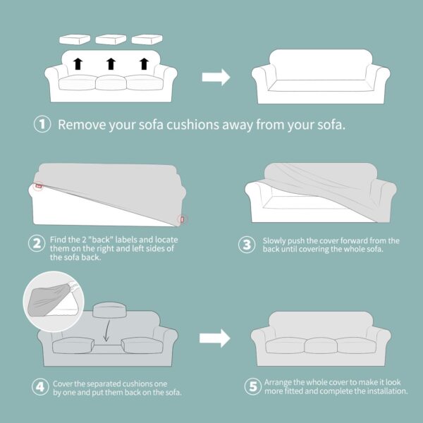 - PERFECTLY FIT: Our Stretchable sofa slipcovers are flexible enough to fit most types of sofa. Made by 95% polyester microfiber and 5% spandex premium quality fabric, highly recommended for small or extra large cloth sofas, leather sofas, high back sofas, t-cushion sofas, box cushion sofas, etc. The stretchy furniture slipcovers is STRAPLESS, easy to install in 5 minutes! With an elastic band at the bottom, it covers sofa tightly and make the magic slip cover stay in place
