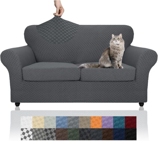 - 3 PIECE COVERS DESIGN: This is a specially customized couch covers for 2 cushion couch. Comes with 1 loveseat slipcover and 2 cushion covers, highly recommended for sofas with removable cushions. This separated couch slipcover design not only maintains the original structure appearance of your love seat sofa, looks more nice and neat, also achieves 100% Non-slip and wrinkle-free. And it’s more convenient to remove for cleaning when one of the cushion cover get dirty