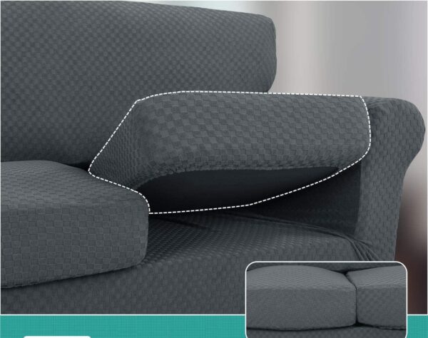 - NEW & IMPROVED FABRIC: Our unique wider and thicker jacquard checks (0.6 by 0.6 inch) design sofa covers look more fashionable and elegant than some other couch covers with small checks on Amazon, makes your sofa look different! The 280GSM high gram thickened fabric is adopted to improve the pet couch cover more durable, skin-friendly, no pilling, no fading, soft and comfortable, it is very breathable in summer, also suitable for all year round use