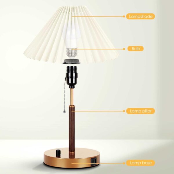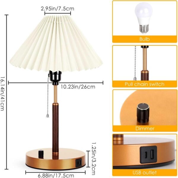 I absolutely love the vintage look of this lamp, and the pleated shade gives off such a cozy vibe. The USB-C port is super convenient for charging my phone overnight without needing an extra brick. It feels sturdy and the dimming feature is perfect for winding down.