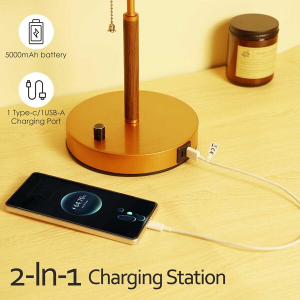 - USB chargig outlet- With a usb-c port (5V/2.1A) and a usb-a port (5V/2.1A), together with built-in 500mAh rechargeable, getting your phones, pad, laptops, humidifier, headsets, speaker, earbuds and other electronics charged no matter if the bed side table lamp is on or off. It’s perfect for those who need to charge their devices in their bedroom.