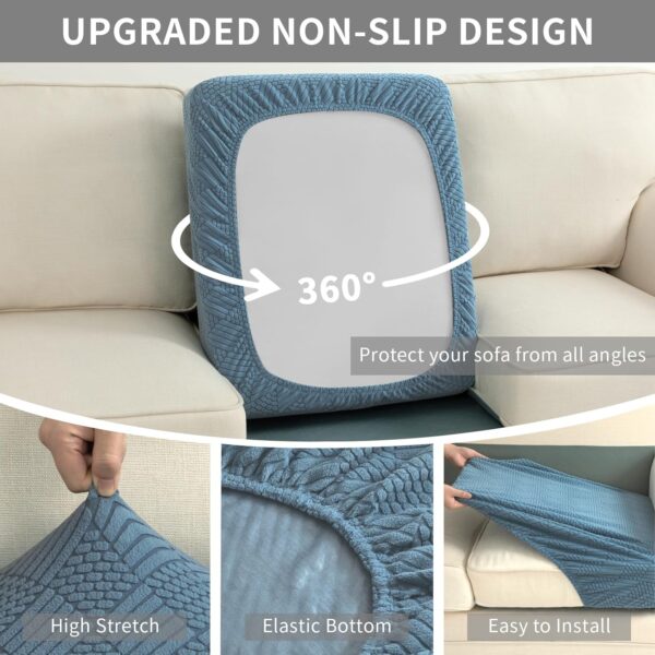 - SUPER STRETCH AND SECURE FIT: Our cushion seat covers are designed with high elasticity to snugly fit your sofa, offering 360° protection. The built-in elastic band keeps the cover securely in place, preventing slipping and shifting. The flexible fabric accommodates various sofa types, including cloth, leather, high-back, and box cushions, making installation quick and hassle-free.