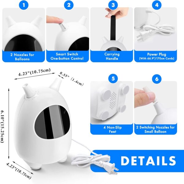 - 【Easy to Use】Just push the inflation nozzle down to start the pump and inflate the balloon, release the nozzle when the balloon is the right size, easy and efficient.