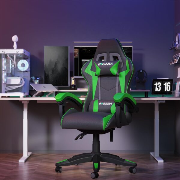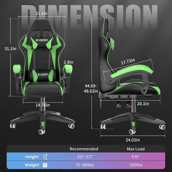 - 【Comfortable Ergonomic Video Game Chair】 Experience unparalleled comfort with our Bigzzia gaming chair, designed with lumbar support, and neck pillow to promote a healthy posture during racing gaming sessions.