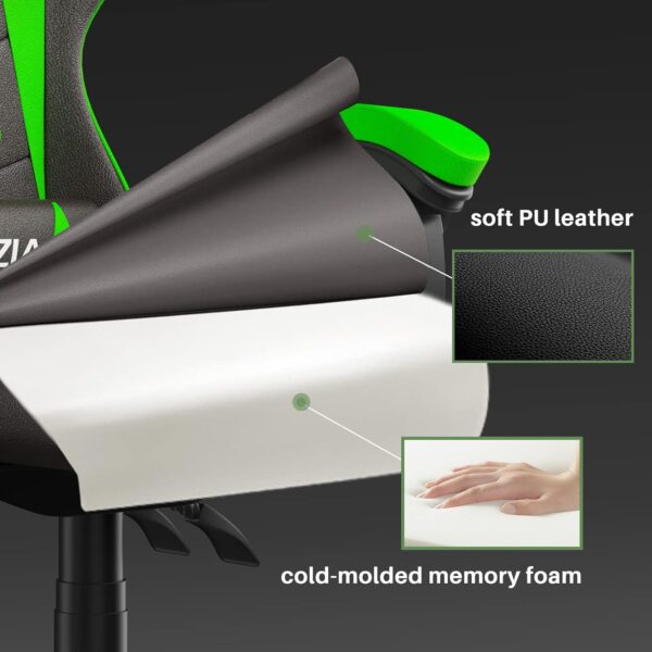 - 【Selected Material Computer Chair】Ditch the cheap PVC material, skin-friendly and soft gaming chair leather material that resistant to scratches, stains, peeling and cracking, while also being breathable, and easy to clean. Bigzzia cushions, backrests and armrests of computer office chair are filled with high-density foam ensure a comfy seating experience, that will retain its form after long periods of use.