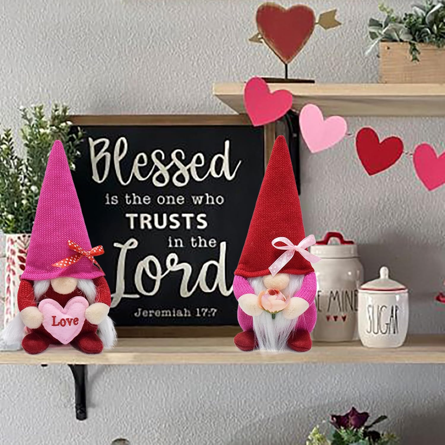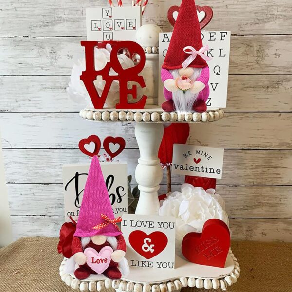 • Cute Valentine’s Day gnomes, perfect for decorating trays, tables, shelves, window sills, counters, or bookshelves to add a festive touch