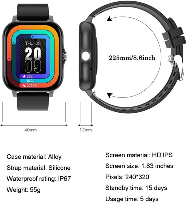 Large 1.83″ IPS Touchscreen – Enjoy vibrant colors and smooth swiping on the full-view display, with customizable dynamic watch faces to match your style.